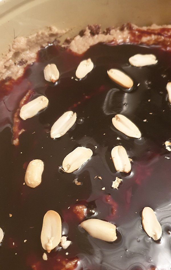 - 50 g Erdnüsse darüber streuen.